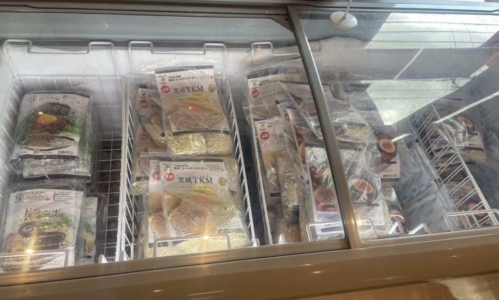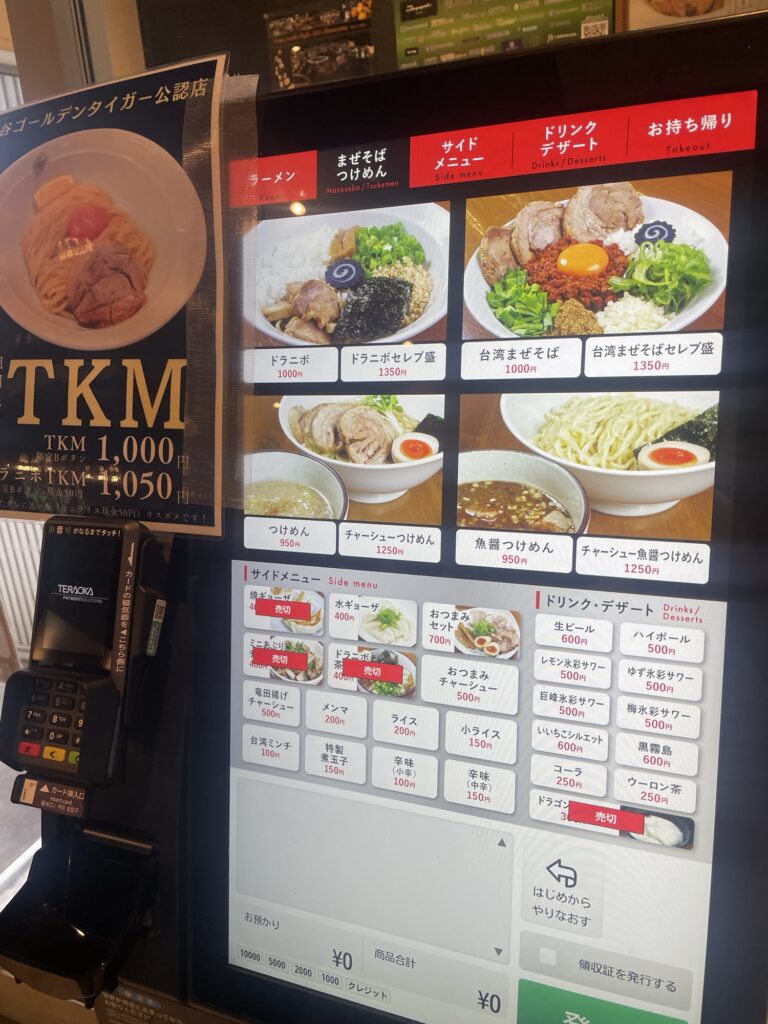 待っている間に、券売機の横にあったショーケースに入った冷食を確認してました。台湾まぜそば、ドラニボ、茨城TKM(たまごかけ麺)など、ドラゴンラーメンさんの商品がパッケージ化されていました。相当なやり手のオーナーさんの様ですね😁期待値が上昇☝️笑