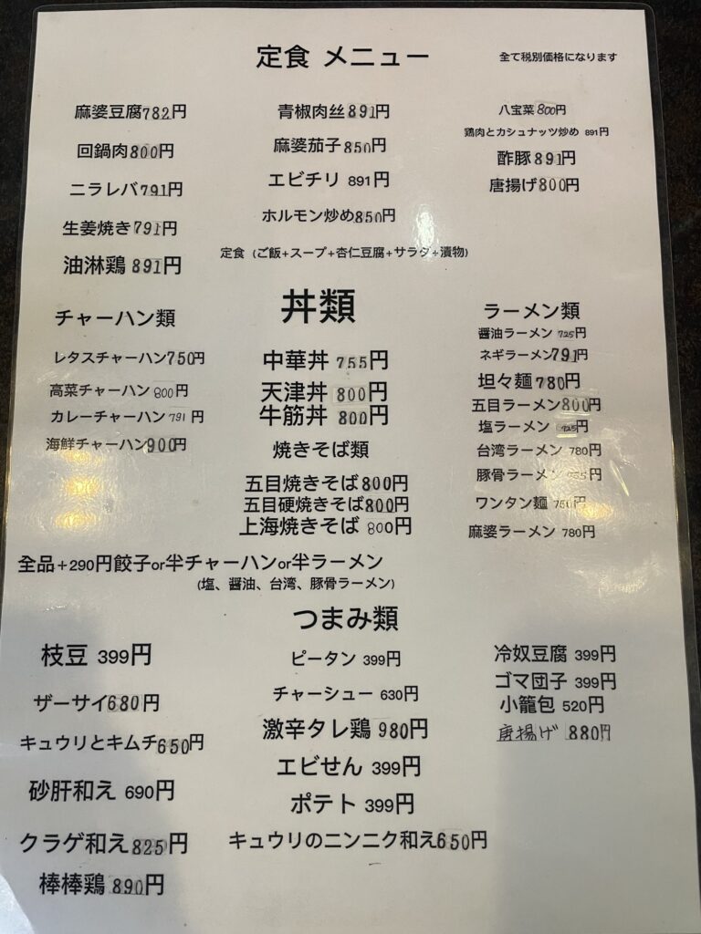 早速メニュー表に目を通します👀辛い物を食べたかったので、営業マンの好きな担々麺をチョイスしました。腹ペコ営業マンは半チャーハンも頼もうかな😋笑 ボタンを押して店員さんを呼びます。担々麺と半チャーハンはオーダー。
