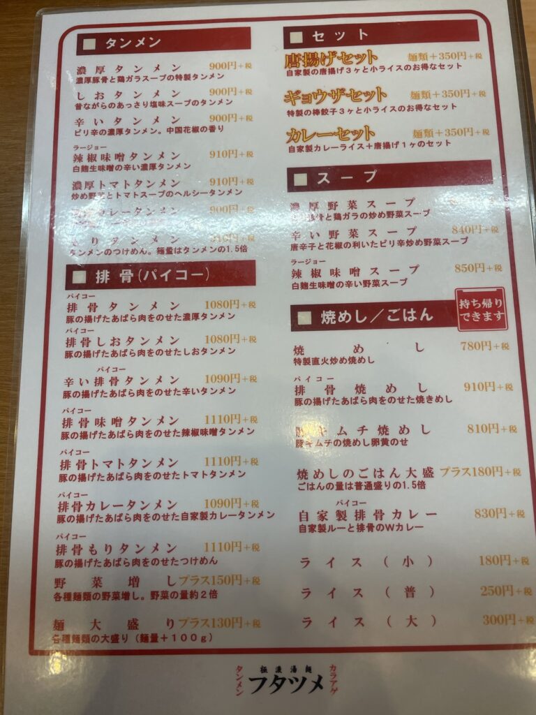 メニュー表に目を通します。営業マンは腹一杯食べたいので、いつも来店したら頼むお決まりの濃厚タンメンに唐揚げセットです。このお店、湯麺は勿論美味しいのですが、唐揚げもデカくて美味しいんですよね!!店員さんを呼んで直接オーダーするシステムになってますので、早速オーダーします。